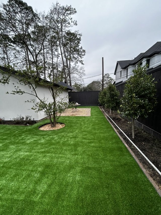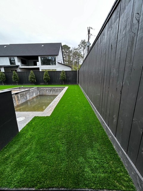 One of the homes we transformed featured a backyard where we installed premium synthetic turf around the pool to create a soft, low-maintenance surface that visually warms the space and improves safety for barefoot use. The turf was contoured to follow the pool. The result is a cleaner, more inviting pool scape that reduces maintenance time, eliminates muddy footprints indoors, and provides a durable, slip-resistant play area for kids and pets without sacrificing modern aesthetics.